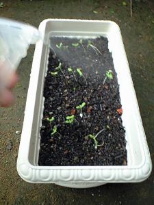 タネ蒔きの際、1センチ間隔で一粒ずつタネを蒔いたつもりでいましたが、いざ芽が出てみると超過密状態、