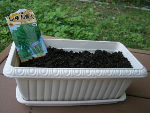 これから我が子同様、この小さな小さな種を一人前の春菊に育てていく所存です♪