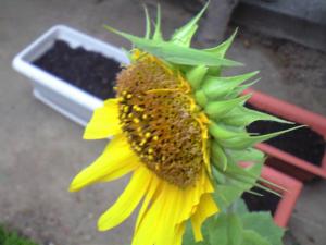 …と、フト視線を感じて隣のミニヒマワリに目をやると…
