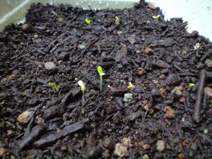 と言う訳で近所の100円ショップでプランターをゲット、早速残りの土を入れて種をパラパラ、でけたっ!