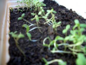 春菊ちゃんたちはぐんぐん成長している。種を植えてからちょうど1週間。双葉の身長およそ30ミリから40ミリ。