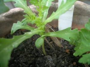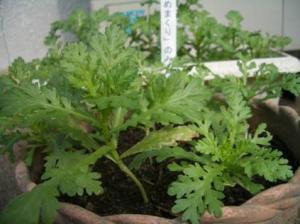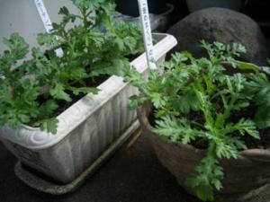 10月26日拙者バッタでござる。うまく春菊に隠れて隙あらば狙うは若葉か?居心地か?・・・・・いやいや、春菊の見張りを部長より頼まれただけでござる。悪い虫がつかないようにのう。もうワシを接写せんでくれんかのう。