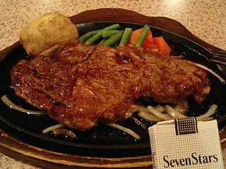 リブロースの「ガッツステーキ」。食べ応え十二分の何と「200グラム」!!