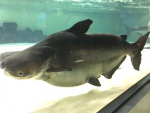 野生のメコンオオナマズは、「シオグサ」と呼ばれる水草を食べているそうです。