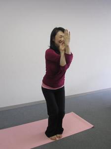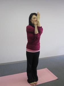 もう少し深く!という方は、さらに両手の平を合わせてみましょう。